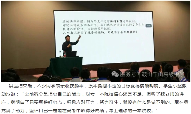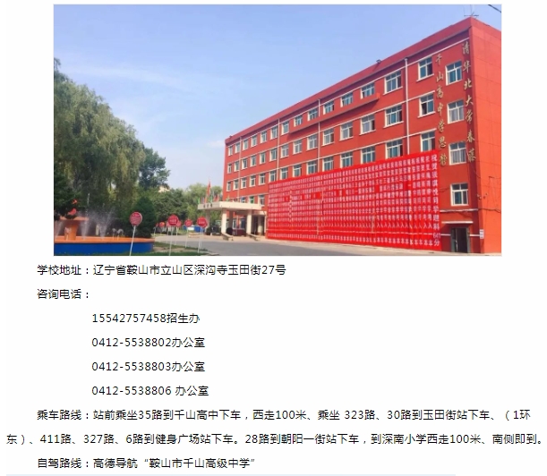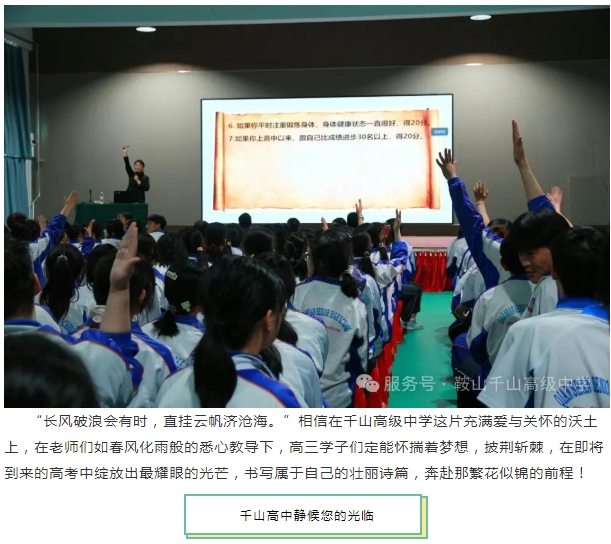 鞍山市千山高级中学 激爆潜能 追求卓越 低进高出 优进精出