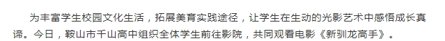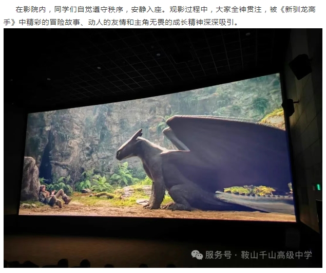 欢乐观影,收获成长——鞍山市千山高中《新驯龙高手》观影