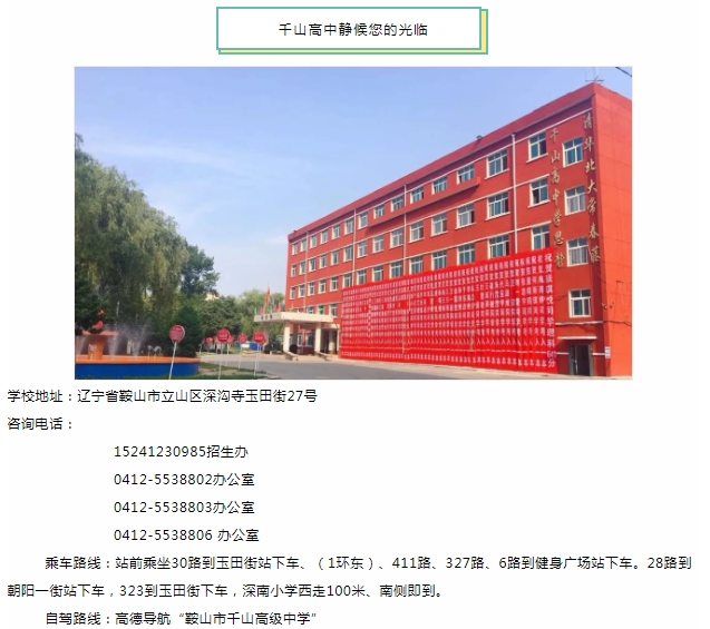 鞍山市千山高级中学 激爆潜能 追求卓越 低进高出 优进精出
