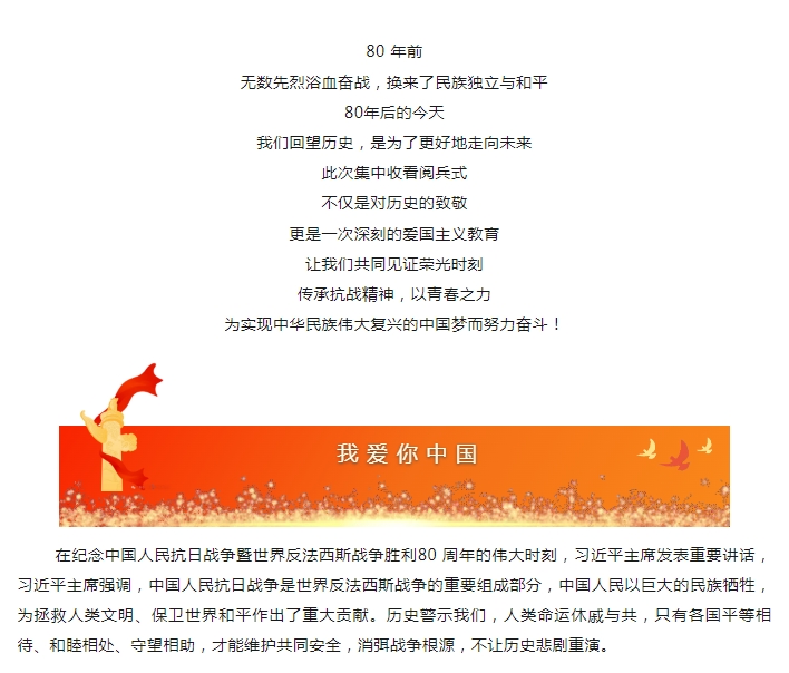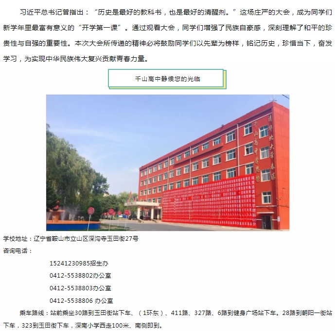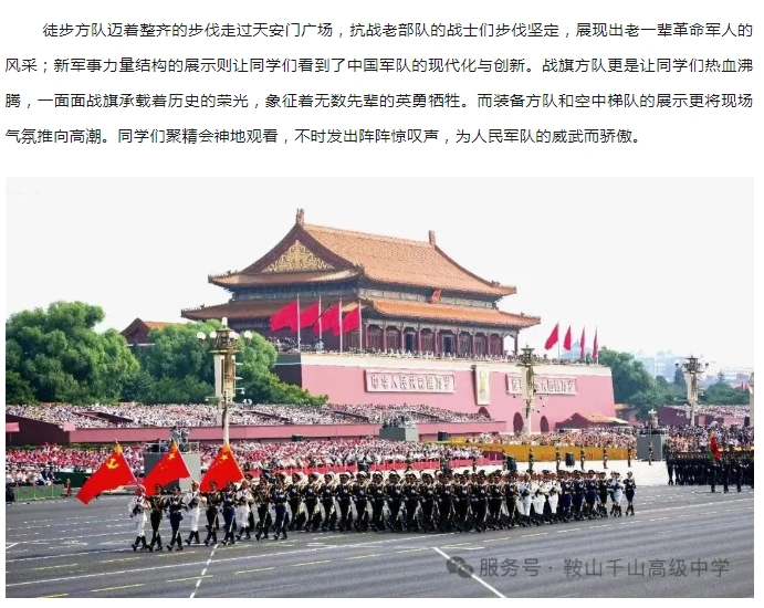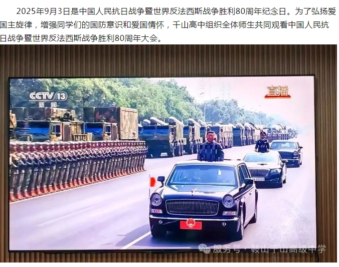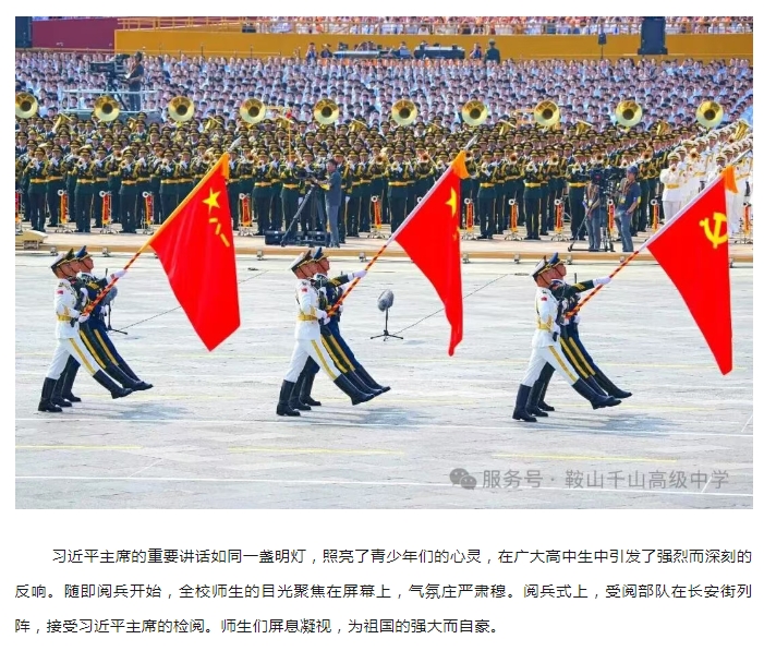 铭记历史,砥砺前行——千山高中组织全体师生观看“九三阅兵”直播