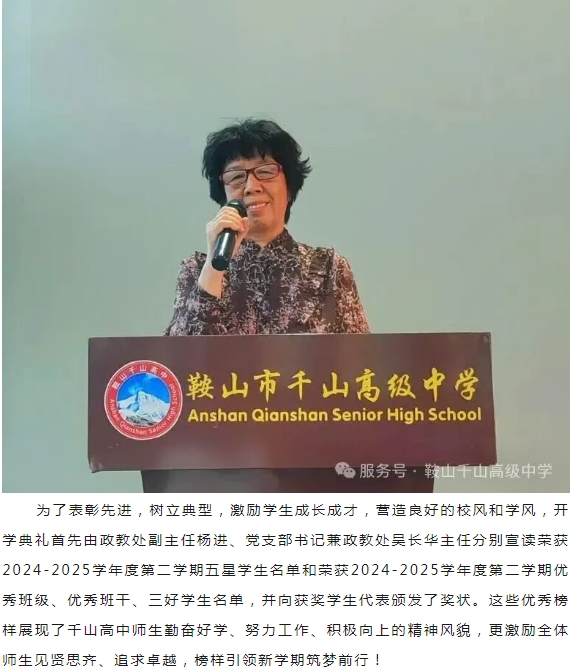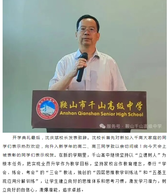 鞍山市千山高级中学 激爆潜能 追求卓越 低进高出 优进精出