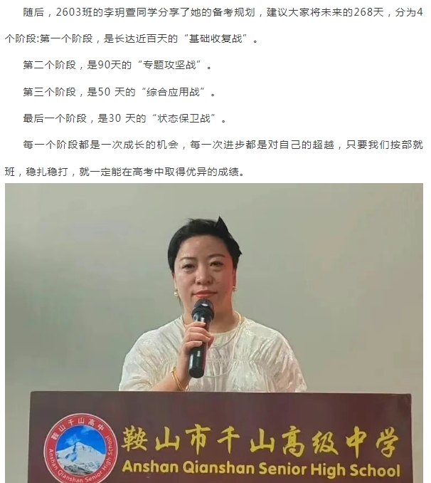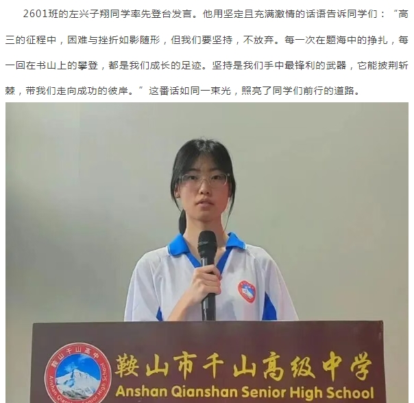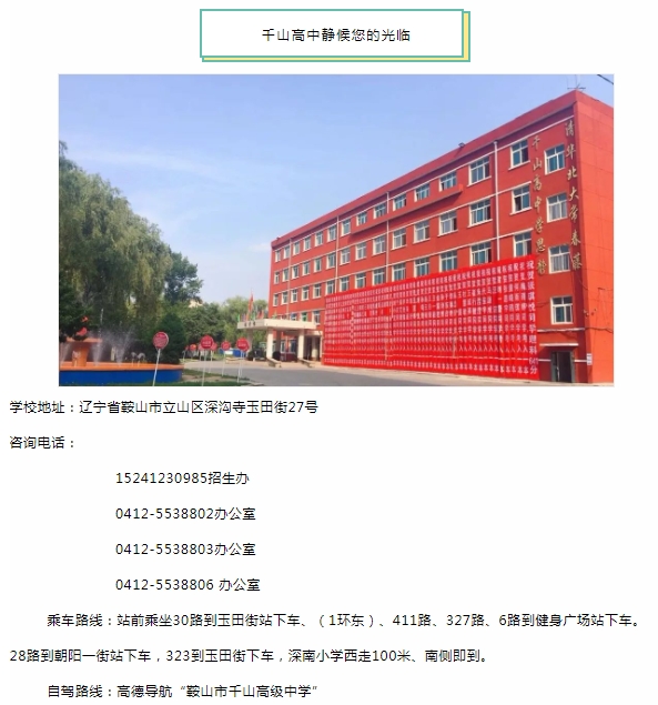 鞍山市千山高级中学 激爆潜能 追求卓越 低进高出 优进精出