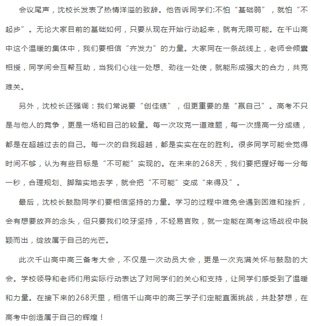 千山高中高三备考大会:直面挑战齐发力,精工细作创佳绩