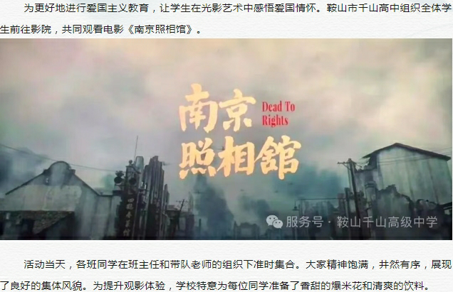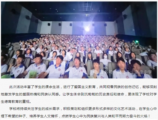 凝聚爱国情怀,砥砺强国之志----鞍山市千山高中组织学生观看爱国主义电影《南京照相馆》