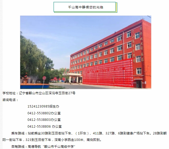 鞍山市千山高级中学 激爆潜能 追求卓越 低进高出 优进精出