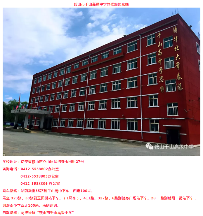 鞍山市千山高级中学 激爆潜能 追求卓越 低进高出 优进精出