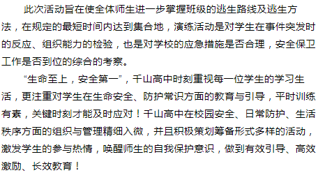 关注校园安全,责任重于泰山——鞍山市千山高级中学消防安全演练