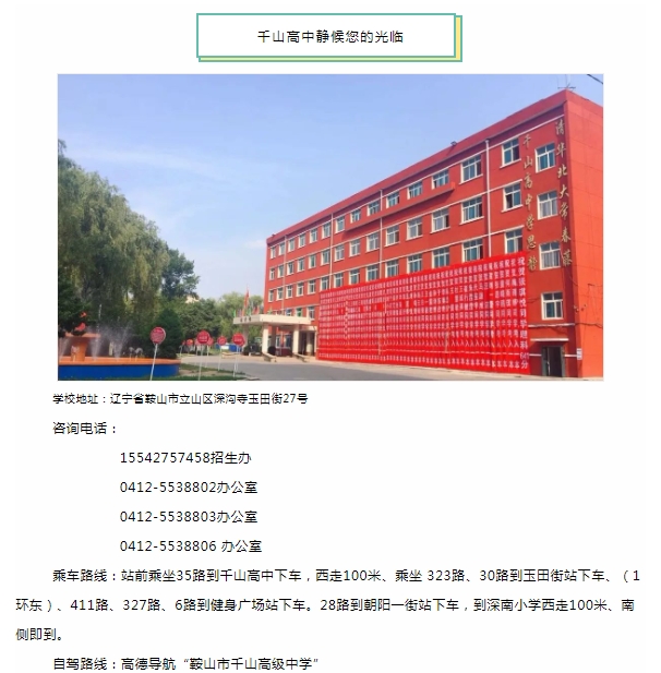 鞍山市千山高级中学 激爆潜能 追求卓越 低进高出 优进精出