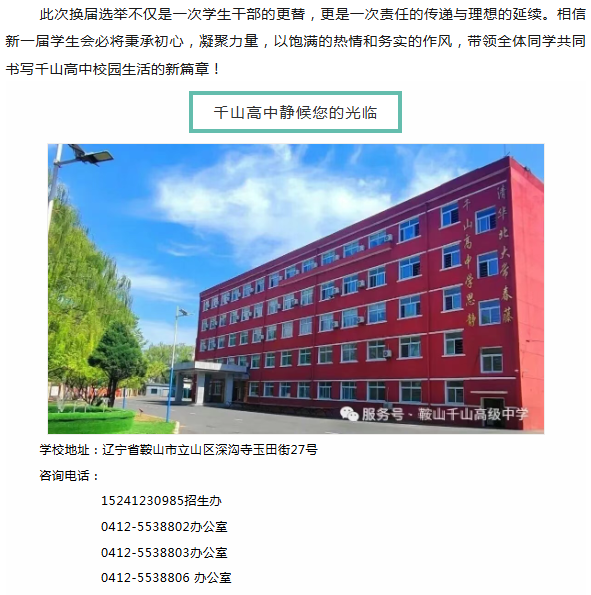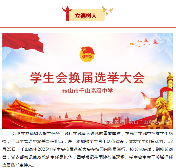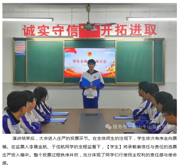 薪火相传担使命、风华正茂启新程---千山高中2025年学生会换届选举圆满完成!