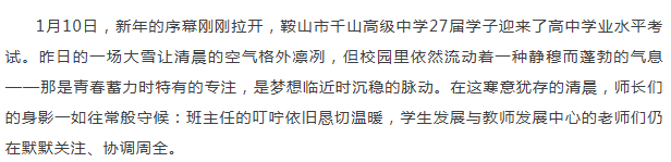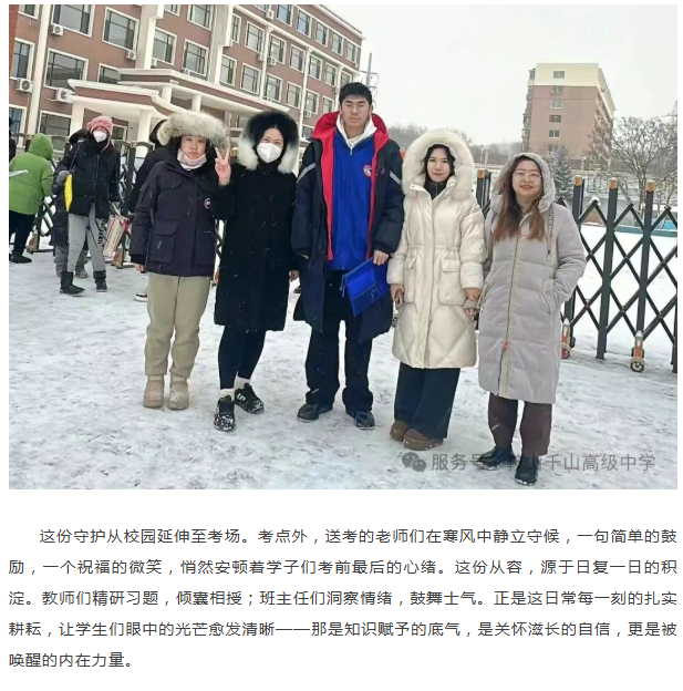 鞍山市千山高级中学---寒晨逐梦笔为剑,雪途护航爱化春