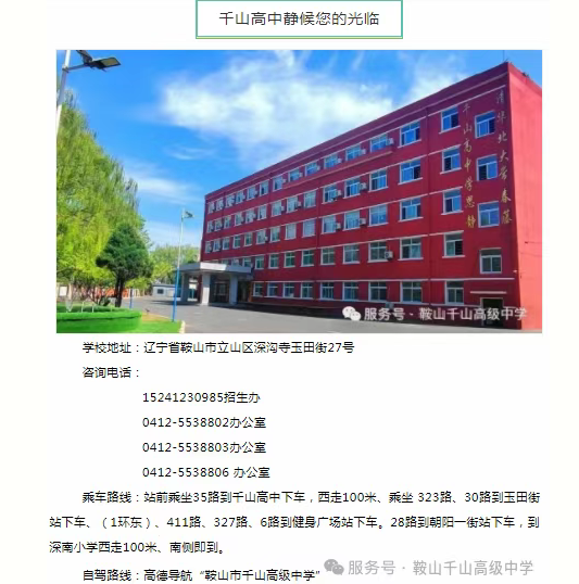 鞍山市千山高级中学 激爆潜能 追求卓越 低进高出 优进精出