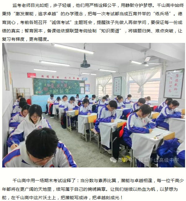 鞍山市千山高级中学---以考促学炼真功 五育并举启新程