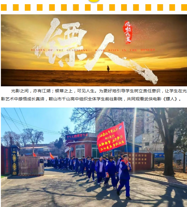 银幕传侠气 青春筑担当——鞍山市千山高中组织观看电影《镖人》