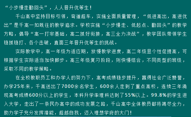 鞍山市千山高级中学 激爆潜能 追求卓越 低进高出 优进精出